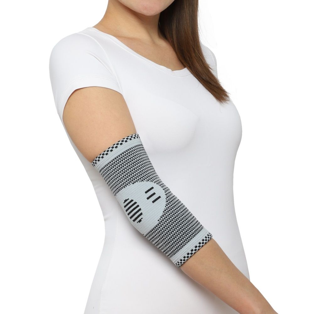 - Обеспечивает необходимую компрессию области локтевого сустава. Способствует уменьшению дискомфорта и боли